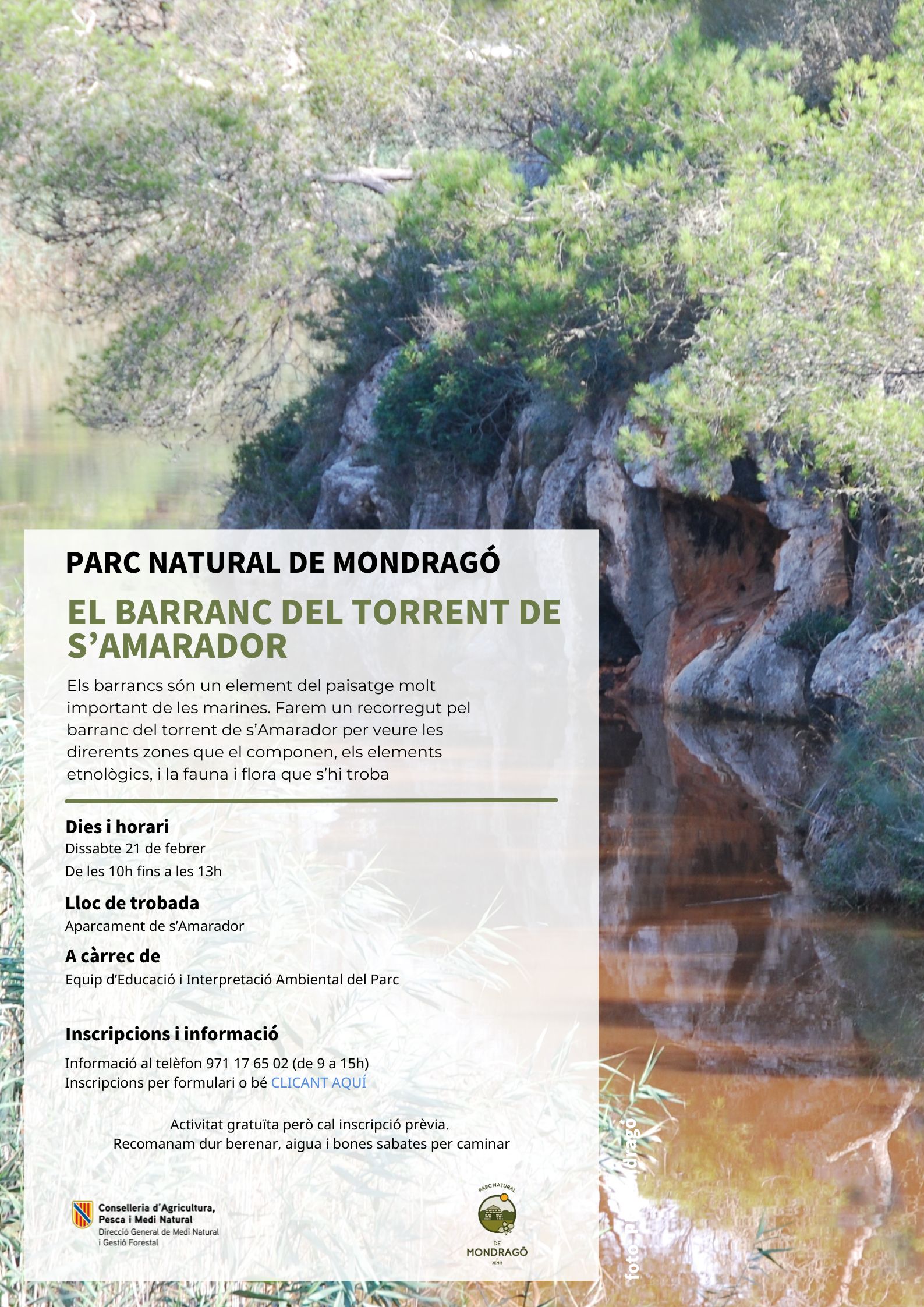 AVÍS IMPORTANT: Per incriure's, cal emplenar el formulari. Si teniu qualque dubte podeu contactar a educacioambientalpnesgrau@caib.es i al telèfon 971177705.