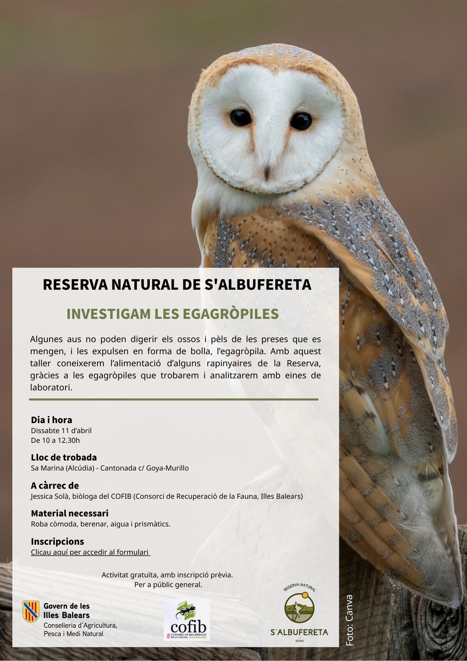 DESCRIPCIÓN: Algunas aves no pueden digerir los huesos y pelos de las presas que se comen, y las expulsan en forma de bola, la egagrópila. Con este taller conoceremos la alimentación de algunas rapaces de la Reserva, gracias a las egagrópilas que encontraremos y analizaremos con herramientas de laboratorio.
