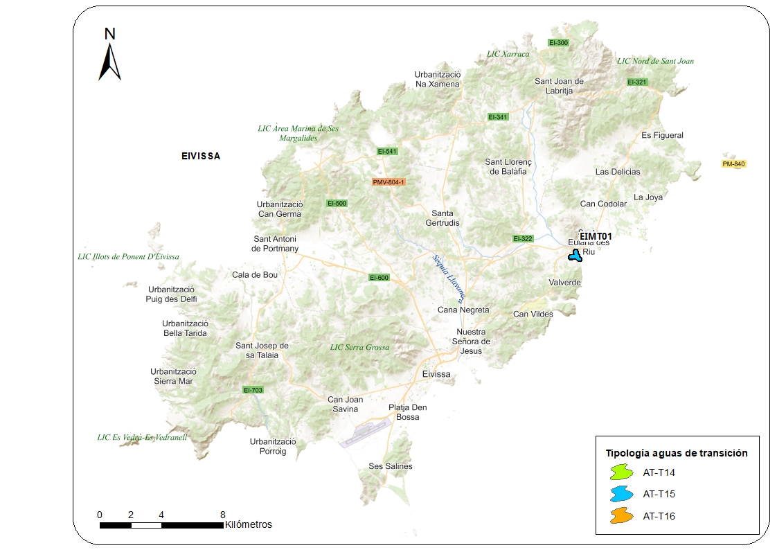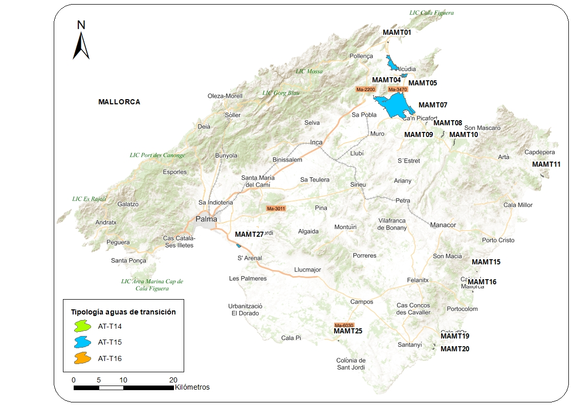 Tipos de masas de aguas superficiales de la categoría aguas de transición en las Illes Balears (Fuente: Anexo 1 de la Memoria del PHIB 2022)
