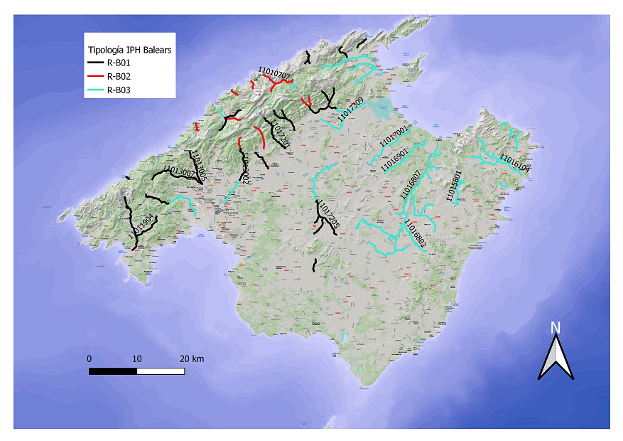 Tipos de masas de aguas superficiales de la categoría río en las Illes Balears (Fuente: Anexo 1 de la Memoria del PHIB 2022)