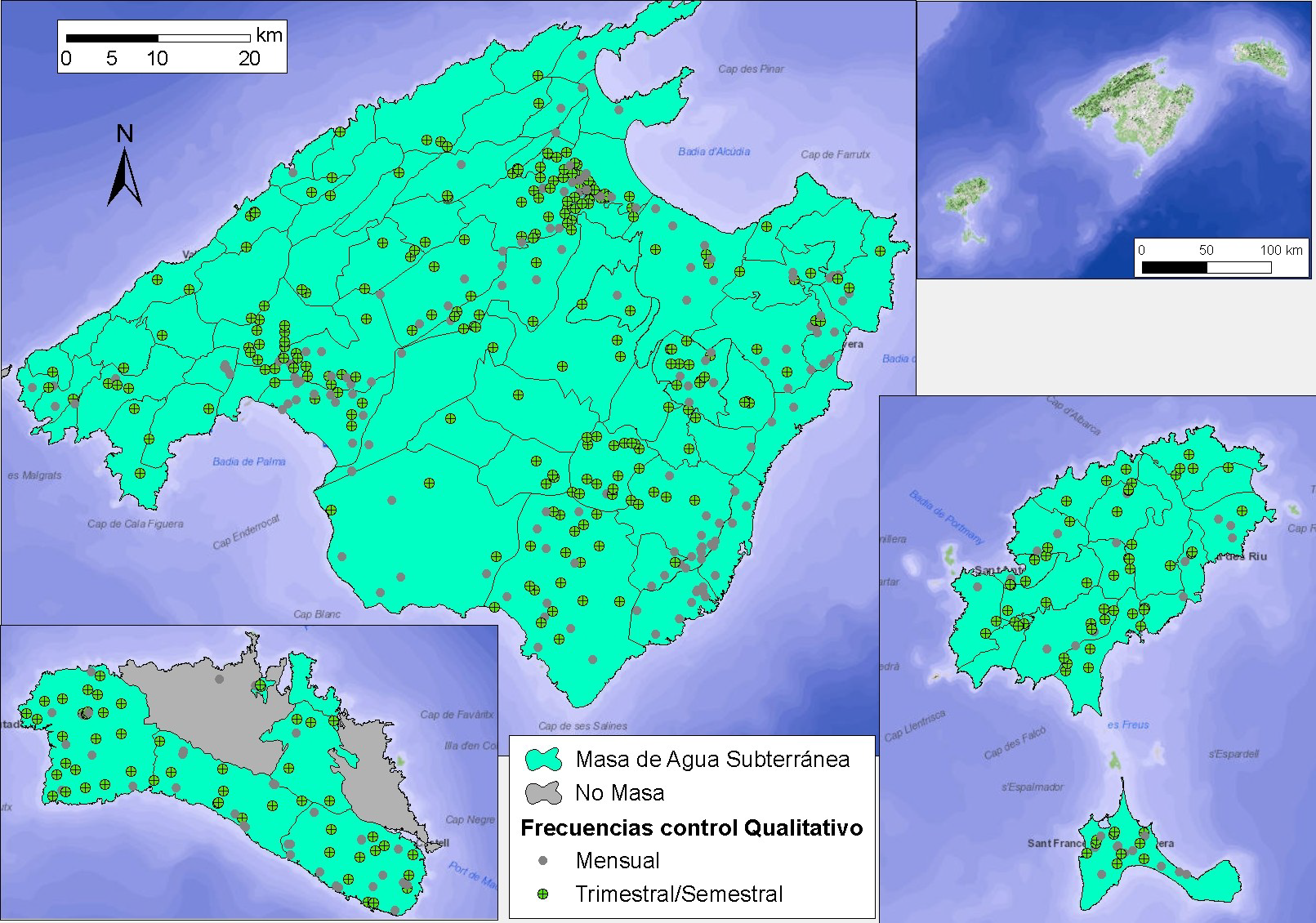 Los programas de control y vigilancia de las masas de agua se realizan a estaciones de control específicas para cada tipo de masa de agua y que se encuentran repartidas a lo largo de todo el territorio balear.