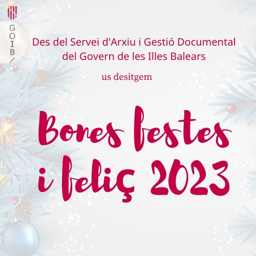 Desde el Servicio de Archivo y Gestión Documental del Govern de les Illes Balears os deseamos unas felices fiestas y un próspero 2023.