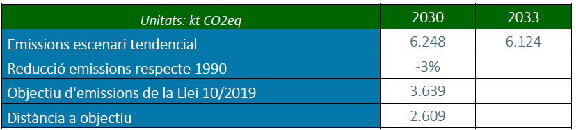 El escenario de emisiones tendencial será el punto de partida para definir las acciones adicionales que tendrá que establecer el Plan de Transición Energética y Cambio Climático para conseguir llegar al escenario objetivo de reducción de emisiones establecido a la Ley 10/2019.