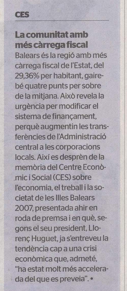 Balears és la regió amb més càrrega fiscal de l'Estat
