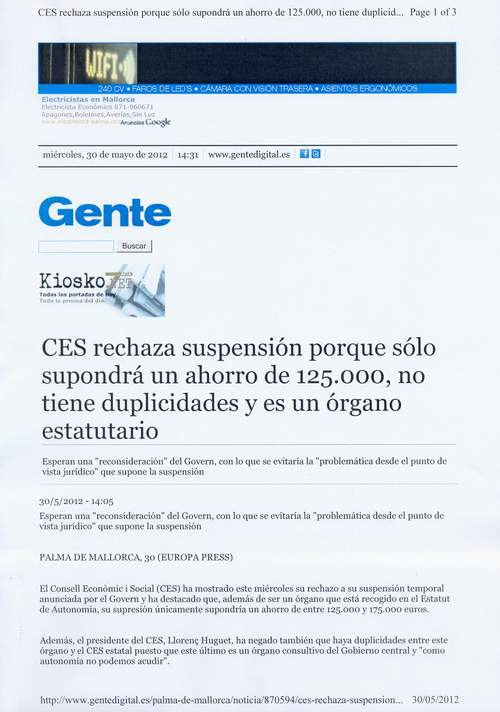 CES rechaza suspensión porque sólo supondrá un ahorro de 125.000, no tiene duplicidades y es un órgano estatutario