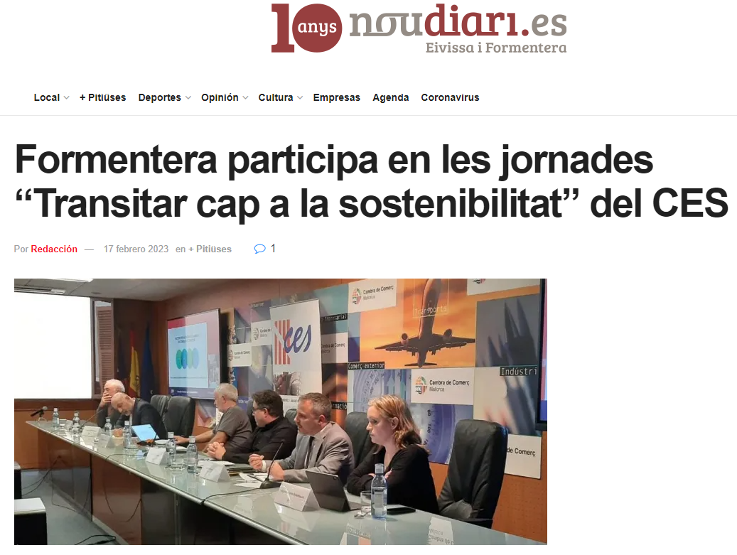 El artículo comenta la participación de Alejandra Ferrer, vicepresidenta y consejera de Turismo de Formentera, en las jornadas «Transitar hacia la sostenibilidad» organizadas por el CES