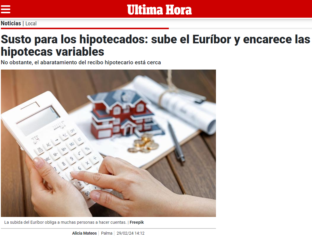 El consejero en representación de las asociaciones de personas consumidoras y usuarias, Pau A. Monserrat Valentí, reflexiona sobre la subida del Euríbor al cierre del mes de febrero.
