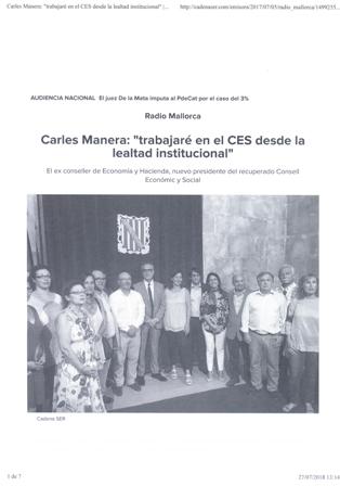 Carles Manera: "trabajaré en el CES desde la lealtad institucional"