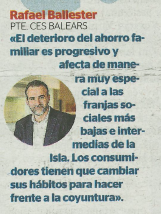 Declaración del presidente del CES Illes Balears, Rafel Ballester Salvà: "El deterioro del ahorro famillar es progresivo y afecta de manera muy especial a las franjas sociales más bajas e intermedias de la Isla. Los consumidores tienen que cambiar sus hábitos para hacer frente a la coyuntura"