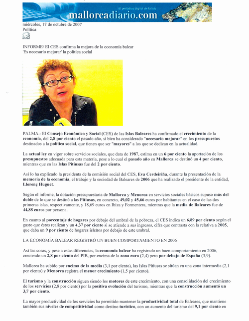 INFORME / EL CES confirma la mejora de la economía balear"Es necesario mejorar" la política social