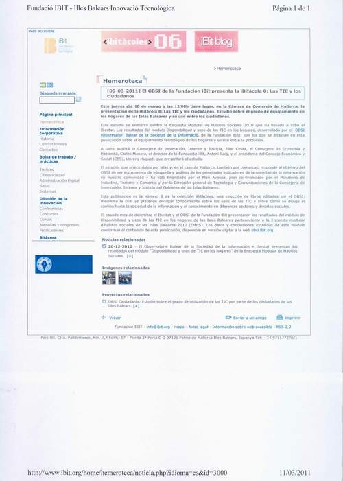 [09-03-2011] El OBSI de la Fundación iBit presenta la iBitàcola 8: Las TIC y los ciudadanos