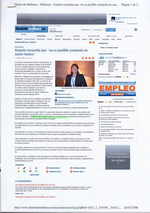 "No es posible construir en suelo rústico", ha aseverado Estarás en relación al aspecto más polémico del proyecto legislativo, una iniciativa que, a su juicio, incumple tanto la ley de evaluación ambiental citada como otros dos requisitos: un informe del Consejo Económico y Social (CES) y un trámite de audiencia para el Ayuntamiento de Palma con consulta al pleno municipal.