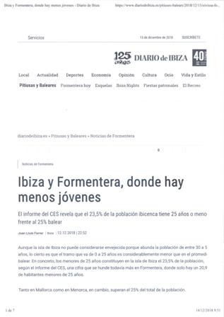 El informe del CES revela que el 23,5% de la población ibicenca tiene 25 años o menos, frente al 25% balear
