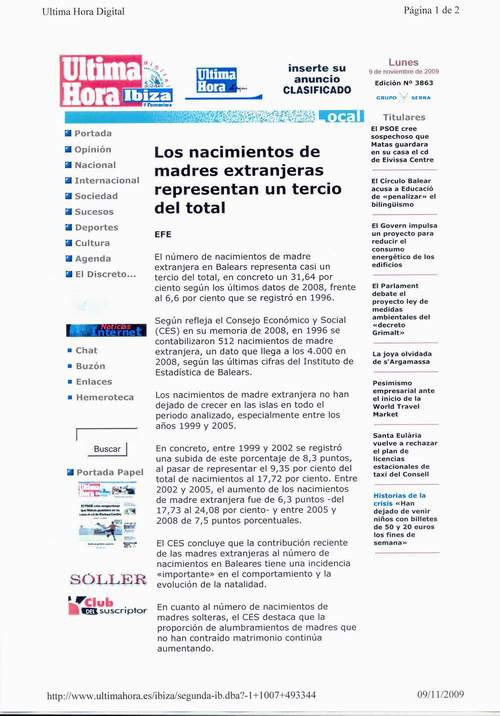 Ultima Hora Ibiza y Formentera. Edición digital -- Lunes 9 de noviembre de 2009