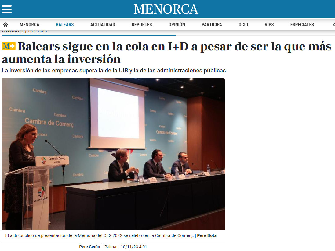 El artículo destaca algunos de los datos más relevantes compartidos en una rueda de prensa al Parlamento de las Islas Baleares, donde se ha hecho la presentación de la Memòria del CES sobre l'economia, el treball i la societat de les Illes Balears 2022