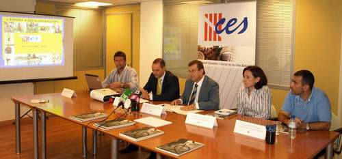 Asistentes: Llorenç Huget Rotger, presidente del CES; Mateu Cañellas Martorell, conseller d'Esports i Joventut y los autores del libro Pere Palou i Xavier Ponseti (Profesores de la UIB)