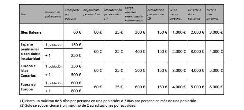 - El desplazamiento y estancia de personas relacionadas con el ámbito del patrimonio cultural inmaterial para participar en concursos y audiciones fuera de la isla de residencia.