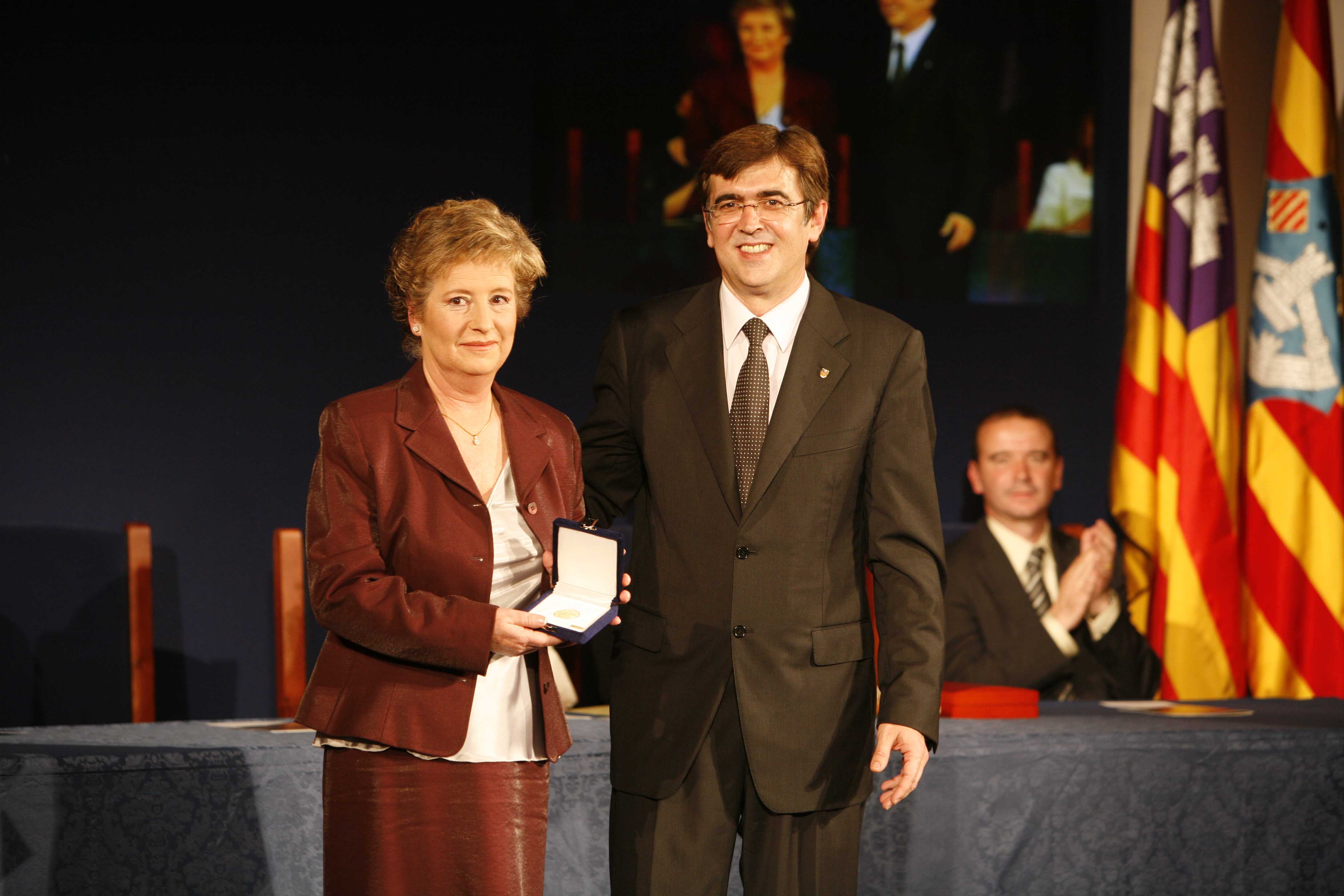 Catalina Sierra recibe de manos del presidente Antich la Medalla de Oro otorgada a la Fundación Patronato Obrero de San José.