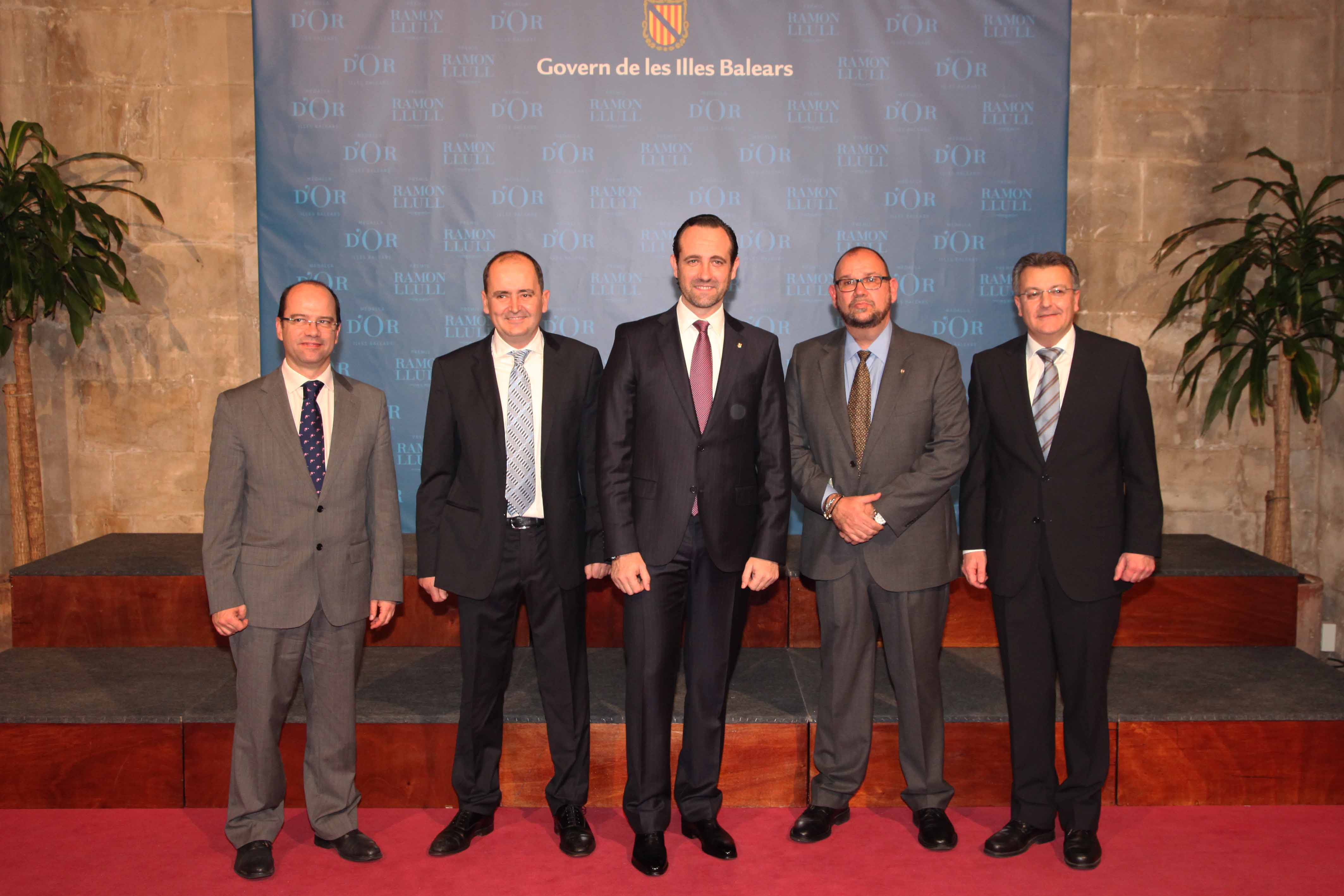 Grupo Menorca. El consejero de Administraciones Públicas, Bartolome Carrasco Benejam, el presidente Bauzá, Josep Manel Allès Salvà y el presidente del Consell de Menorca Santiago Tadeo.