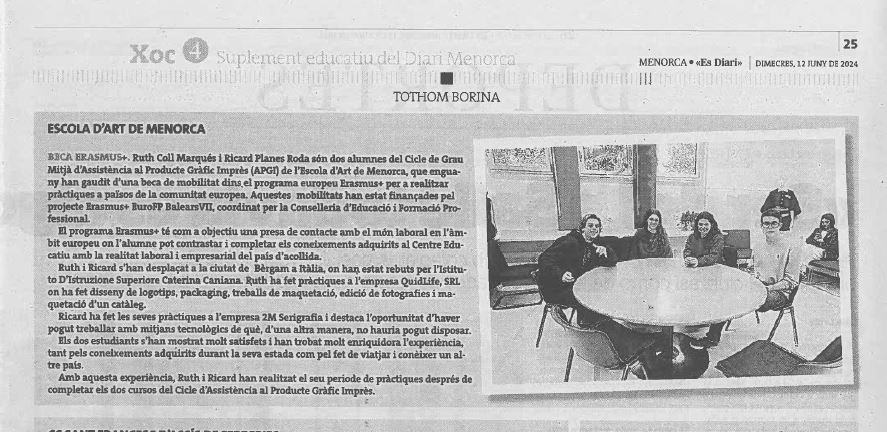 - Escola d'Art de Menorca. Publicació al Suplement educatiu del Diari de Menorca el 13/12/2023