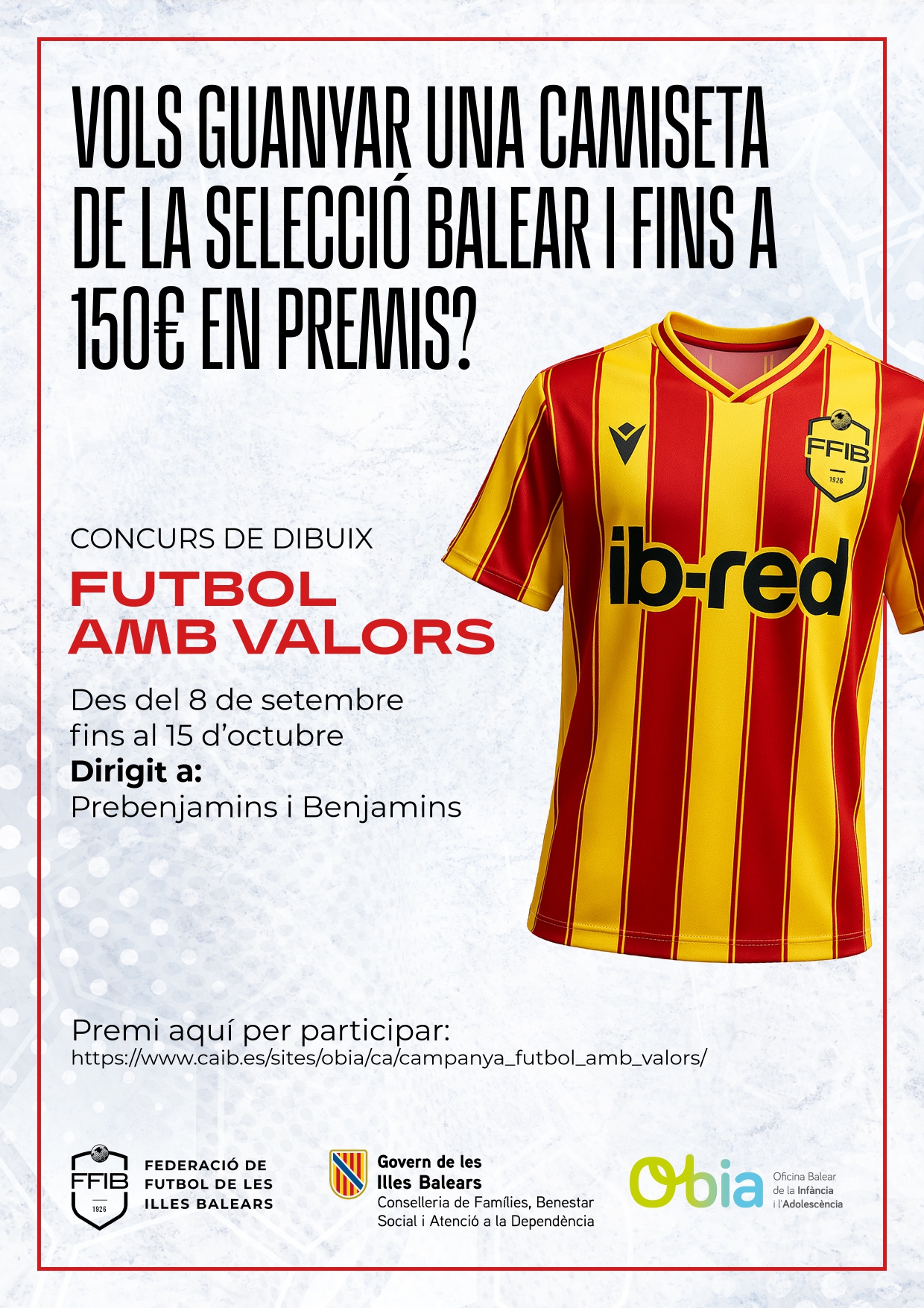 Des de l’Oficina Balear de la Infància i l’Adolescència, en col·laboració amb la Federació de Futbol de les Illes Balears, hem posat en marxa el concurs de dibuix “Futbol amb Valors”, dins la campanya Futbol sense violència.