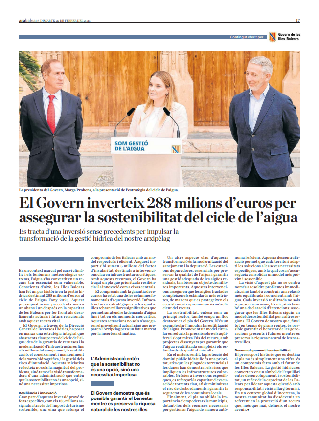 NOTA: Los datos de este documento son meramente informativos y corresponden a las campañas ejecutadas por la Dirección General de Coordinación y Transparencia, sin perjuicio de las inserciones puntuales que, al amparo de lo que disponga la instrucción 1/2022 del director general de Comunicación por la cual se establecen los procedimientos de coordinación y control de la actuación administrativa en materia de realitzación y difusión de la publicidad del Gobierno de las Illes Balears, hayan podido hacer las diferentes consejerías del Gobierno de las Illes Balears.