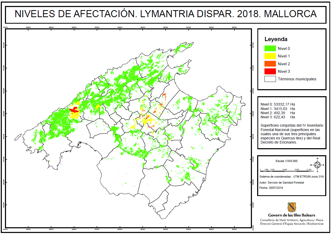 • Mapas de afectación de la procesionaria del pino en las Islas Baleares