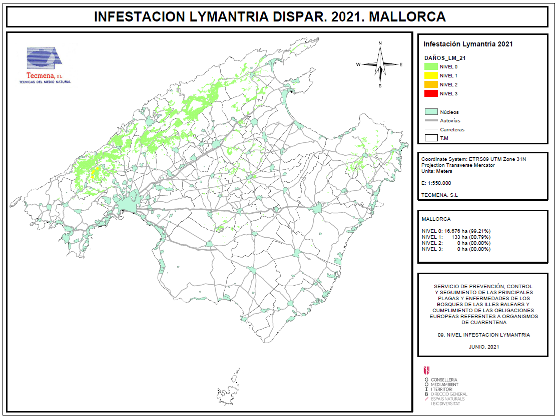 Mapas de afectación de la procesionaria del pino en las Islas Baleares