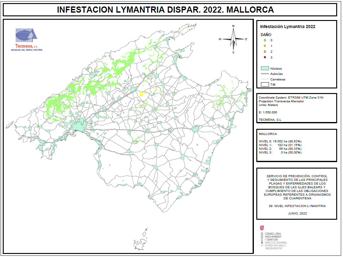 Mapas de afectación de Paysandisia archon en Mallorca y Menorca