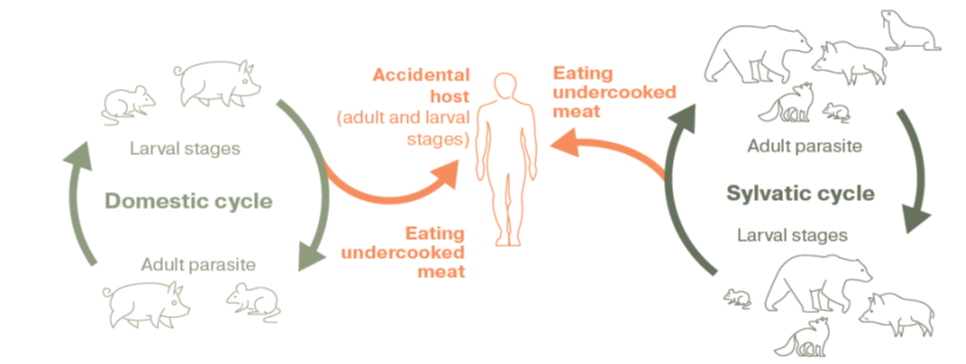 La triquinosi és una malaltia parasitària àmpliament difosa a tot el món que es transmet pels aliments (carn crua o poc cuinada i embotits no sotmesos a tractament tèrmic de porcs, senglars, cavalls, mules i rucs, així com d’altres animals sensibles a aquest paràsit).