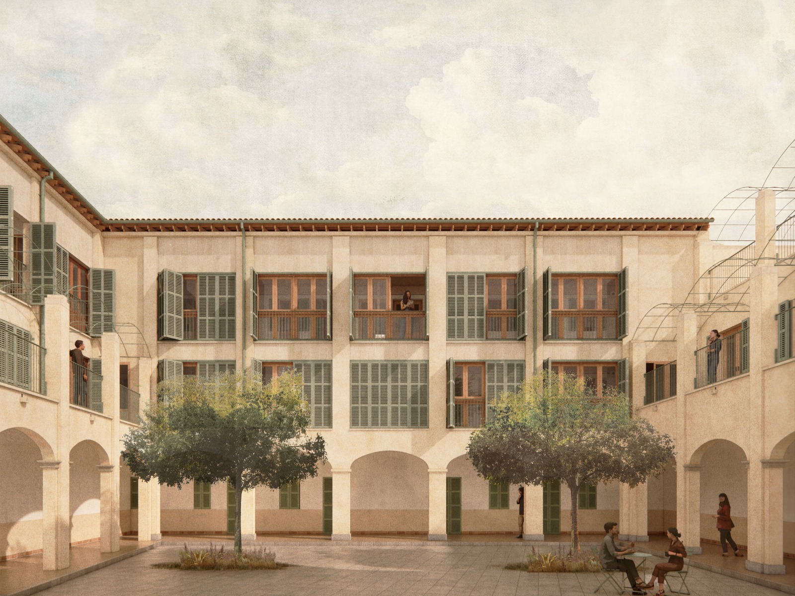 El espacio interior se reformará para dar cabida a ocho viviendas dotacionales —una de ellas adaptada para personas con discapacidad— de entre 31 y 39 m². Estas viviendas dispondrán de un dormitorio doble, baño, cocina y sala de estar. Además, se rehabilitarán también los antiguos espacios comunes para dotar a la promoción de lavandería, cocina, comedor y sala de estar.