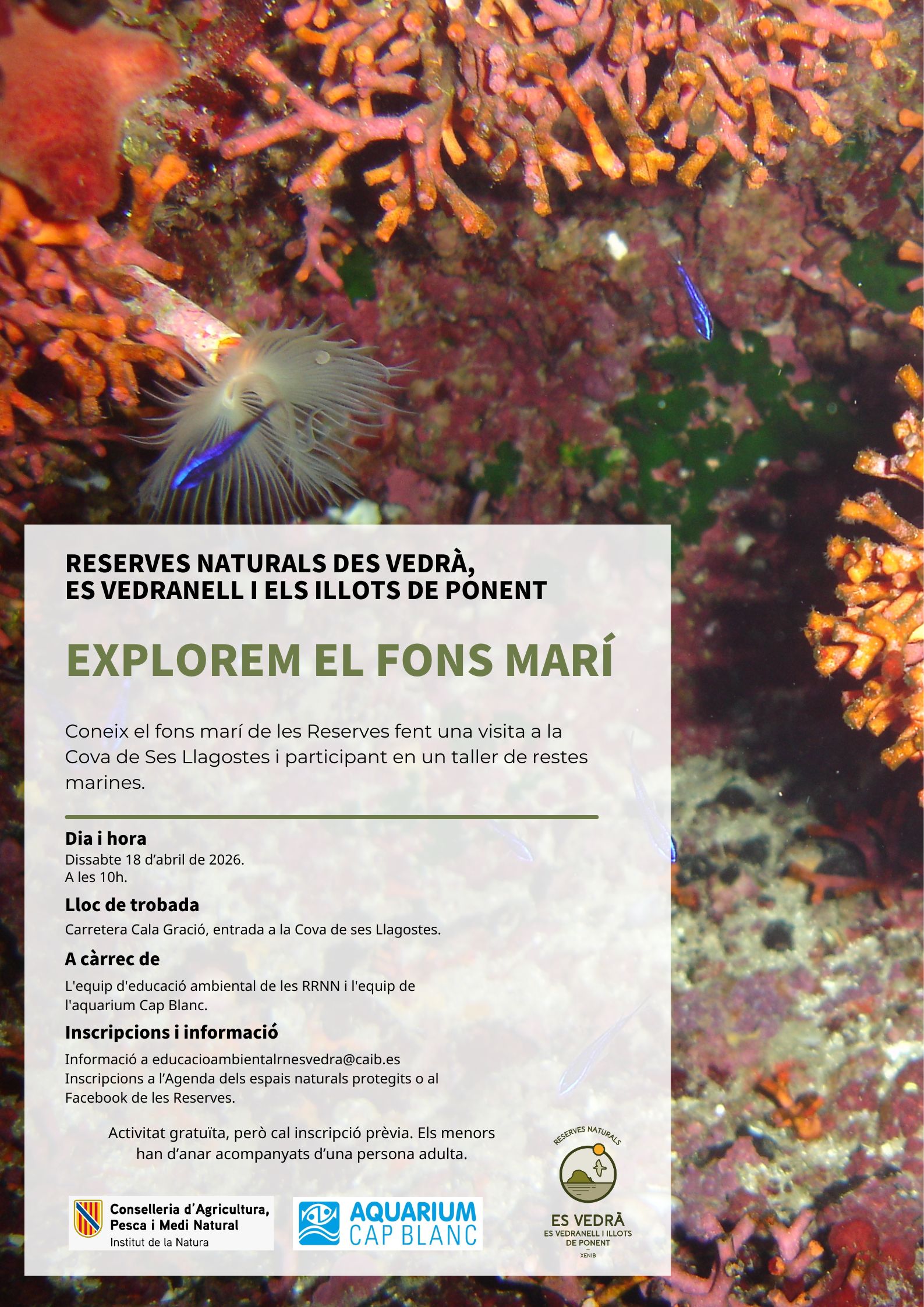 DESCRIPCIÓ: Coneix el fons marí de les Reserves fent una visita a la Cova de Ses Llagostes i participant en un taller de restes marines.
