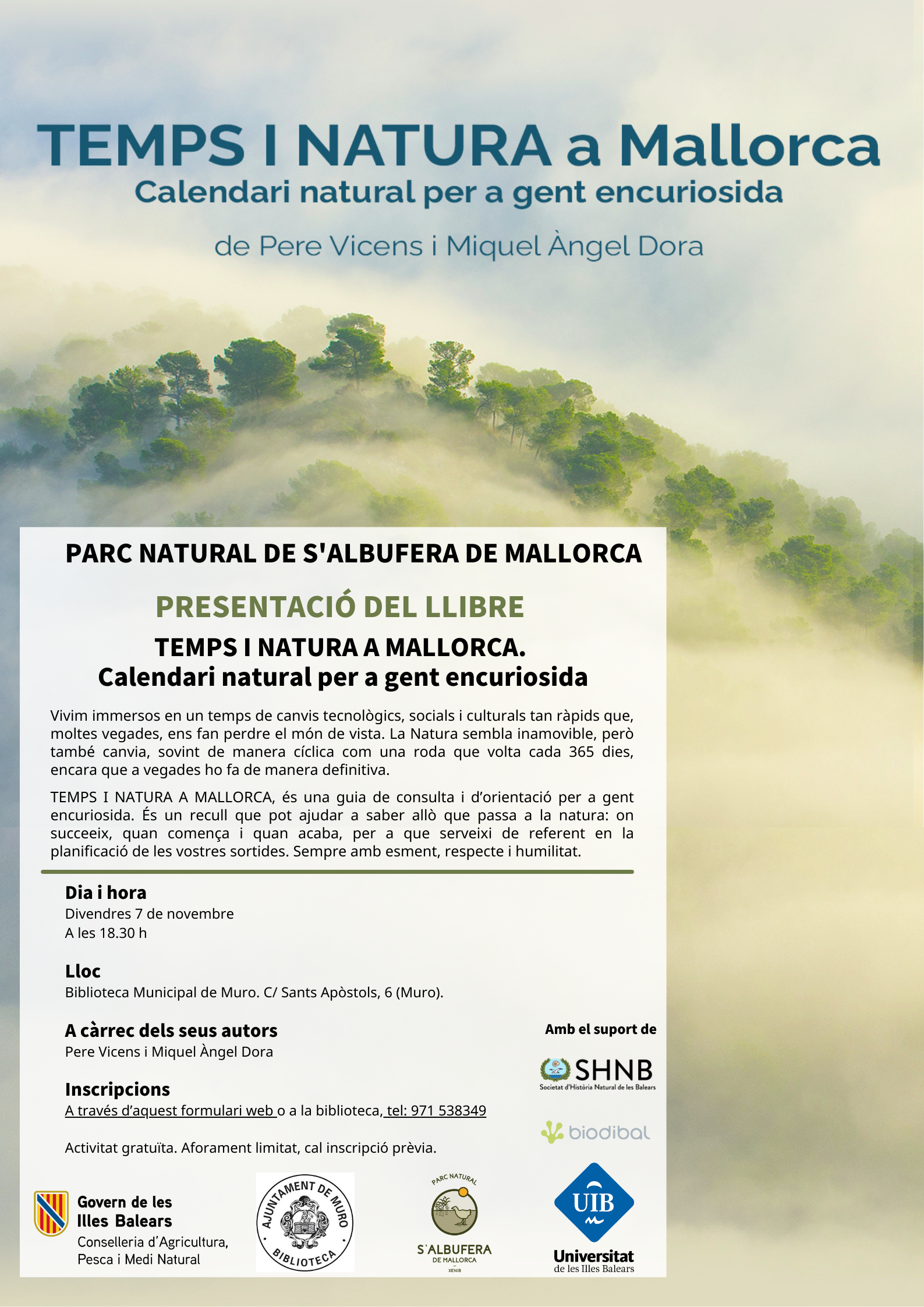 TIEMPO Y NATURA En MALLORCA , es una guía de consulta y de orientación para gente interesada. Es una compilación que puede ayudar a saber aquello que pasa a la natura: donde sucede, cuando empieza y cuando acaba, para que sirva de referente en la planificación de vuestras salidas. Siempre con mención, respeto y humildad.