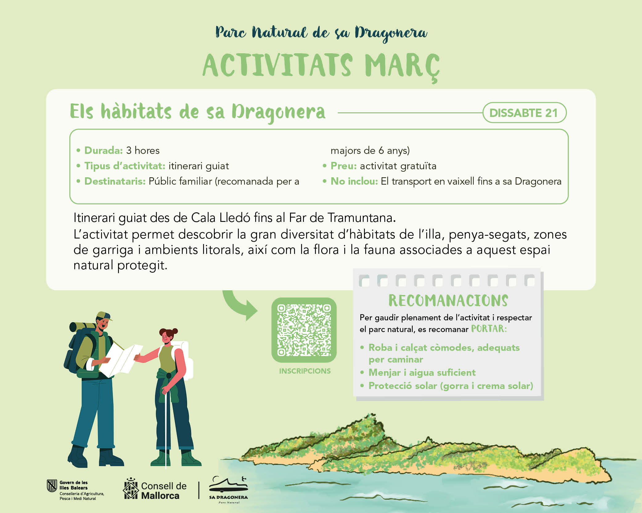 AVISO IMPORTANTE: Para realizar la inscripción hay que rellenar este formulario. Si tienen alguna duda, pueden contactar por correo electrónico a parcdragonera@conselldemallorca.net. Recibirán un correo para confirmar la inscripción.