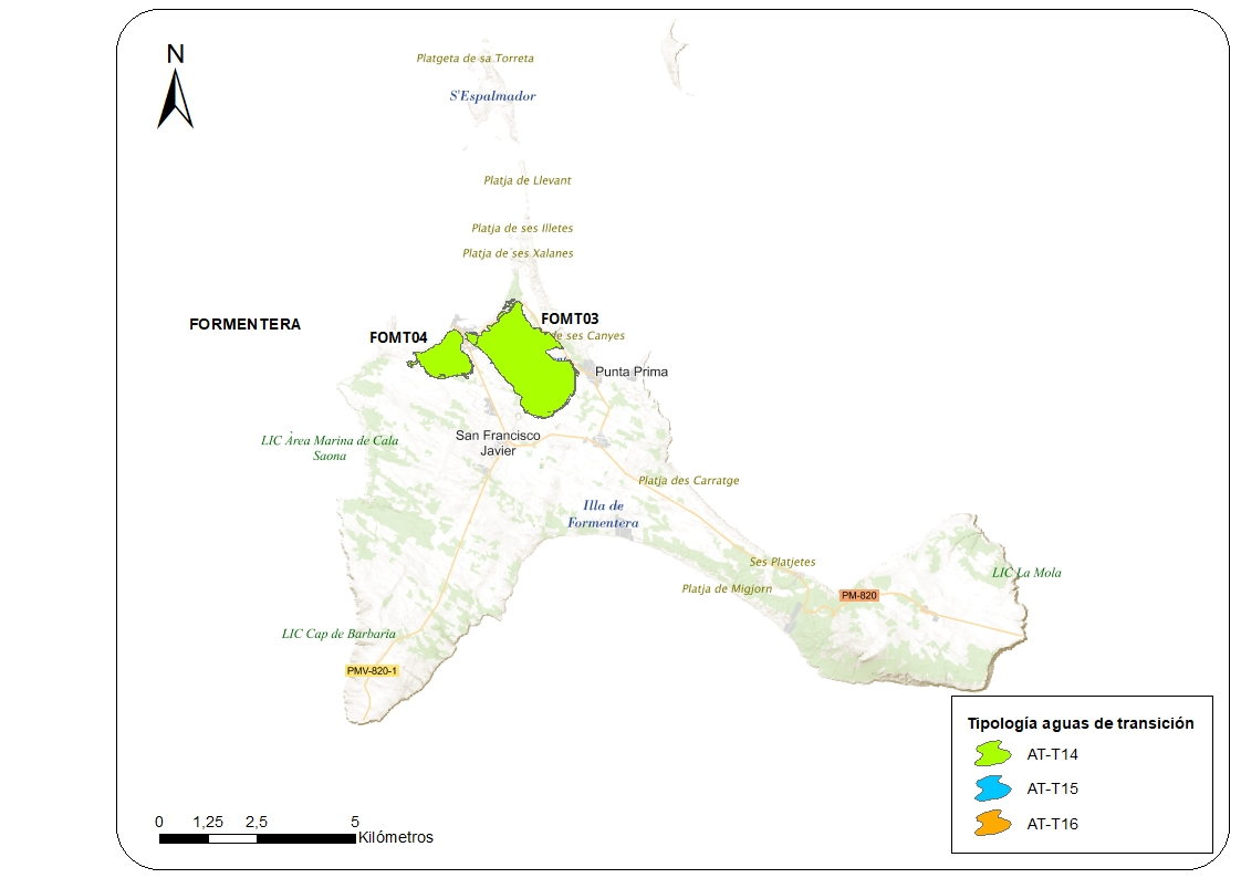Tipus de masses d’aigües superficials de la categoria aigües de transició a les Illes Balears (Font: Annex 1 de la Memòria del PHIB 2022)
