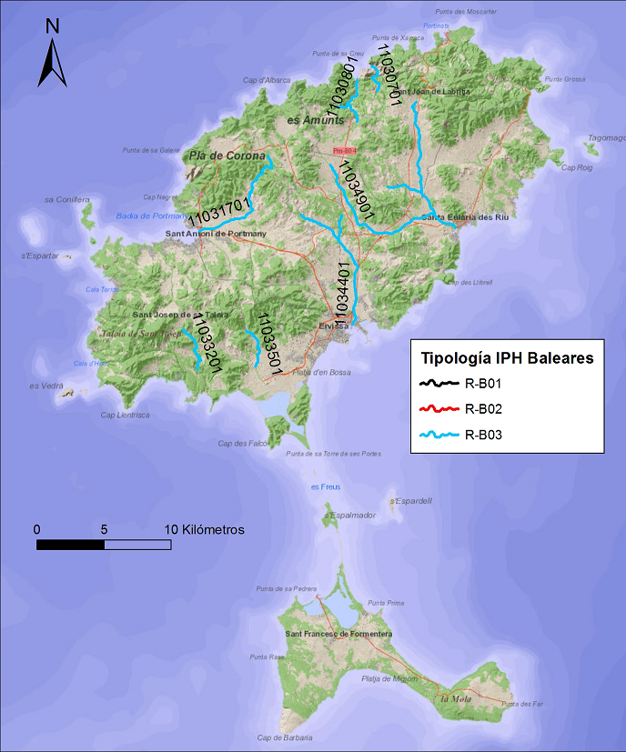 Tipus de masses d’aigües superficials de la categoria riu a les Illes Balears (Font: Annex 1 de la Memòria del PHIB 2022)