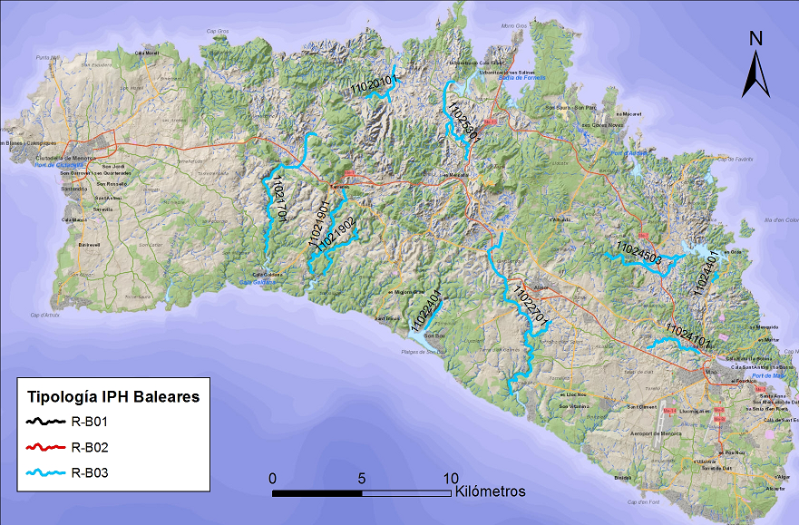 Tipos de masas de aguas superficiales de la categoría río en las Illes Balears (Fuente: Anexo 1 de la Memoria del PHIB 2022)