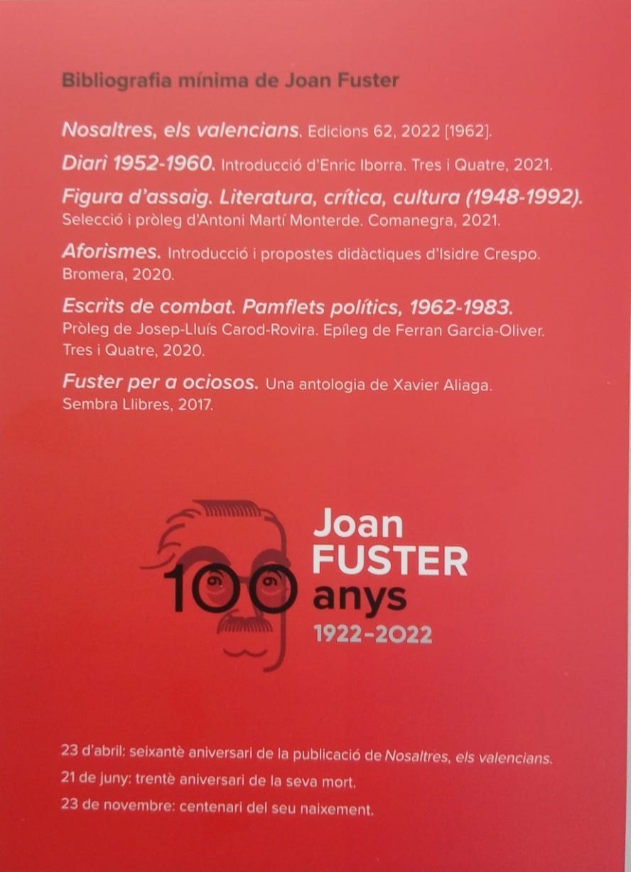 La Direcció General de Política Lingüística ha elaborat el material que figura a continuació en el marc de la commemoració de l'Any Joan Fuster i el posa a disposició de totes les administracions i entitats. Se'n poden sol·licitar exemplars a través de l'adreça anyjoanfuster@dgpoling.caib.es.