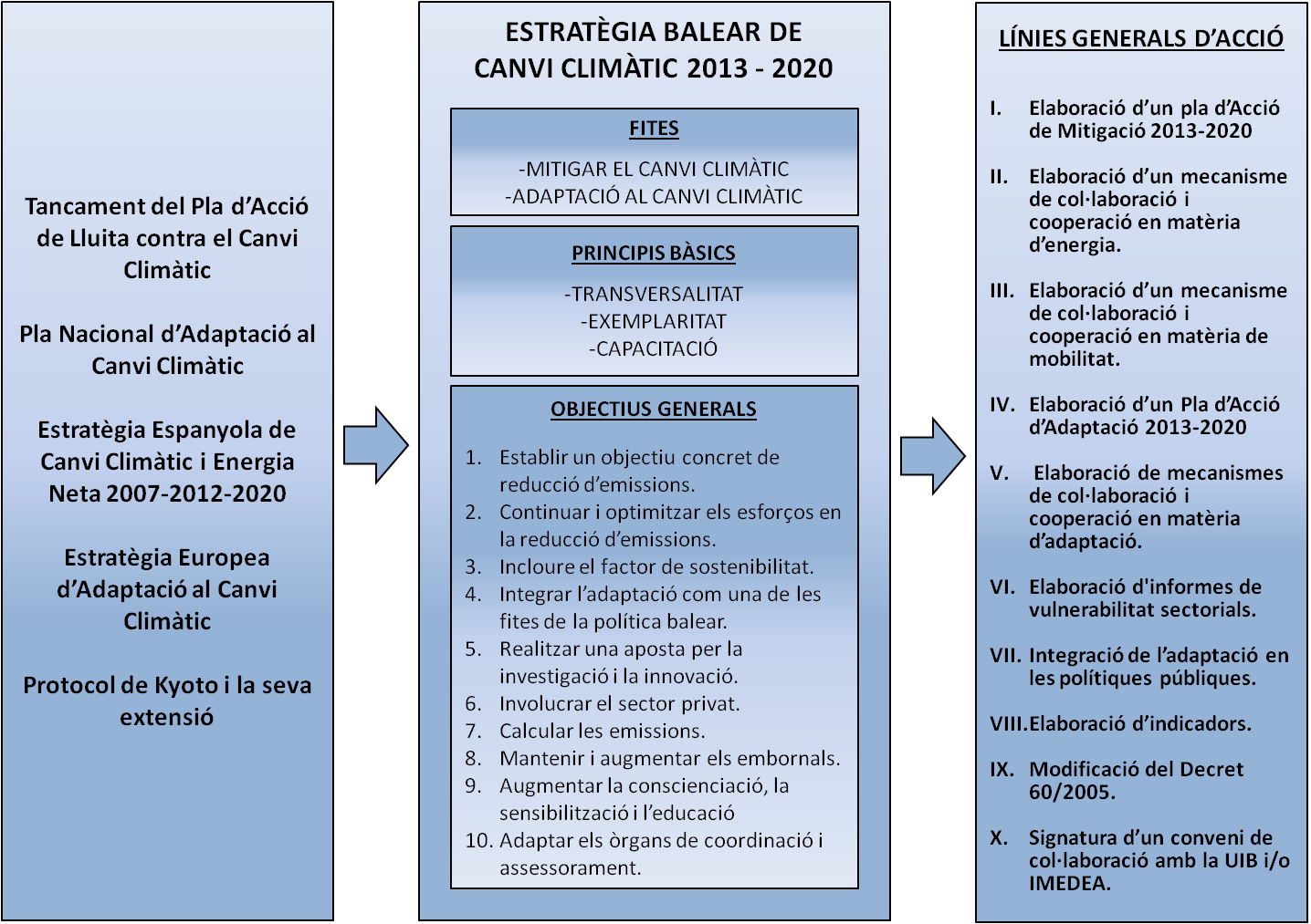 El Pla d’Acció de Mitigació contra el Canvi Climàtic a les Illes Balears 2013–2020 va ser aprovat per la Comissió Interdepartamental sobre Canvi Climàtic el 9 d'abril de 2014.
