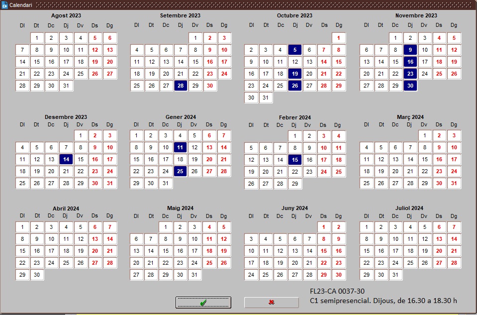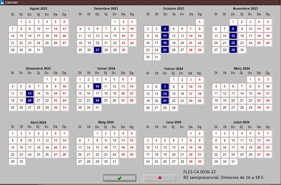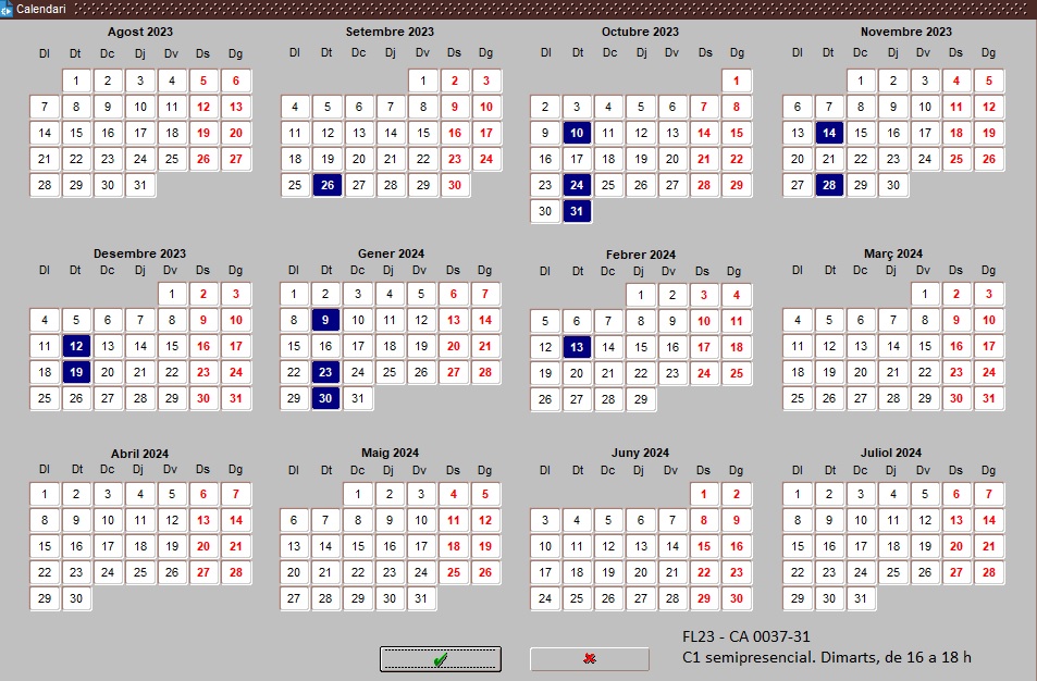 Dies i horari | Llocs d'impartició | Calendari del curs |