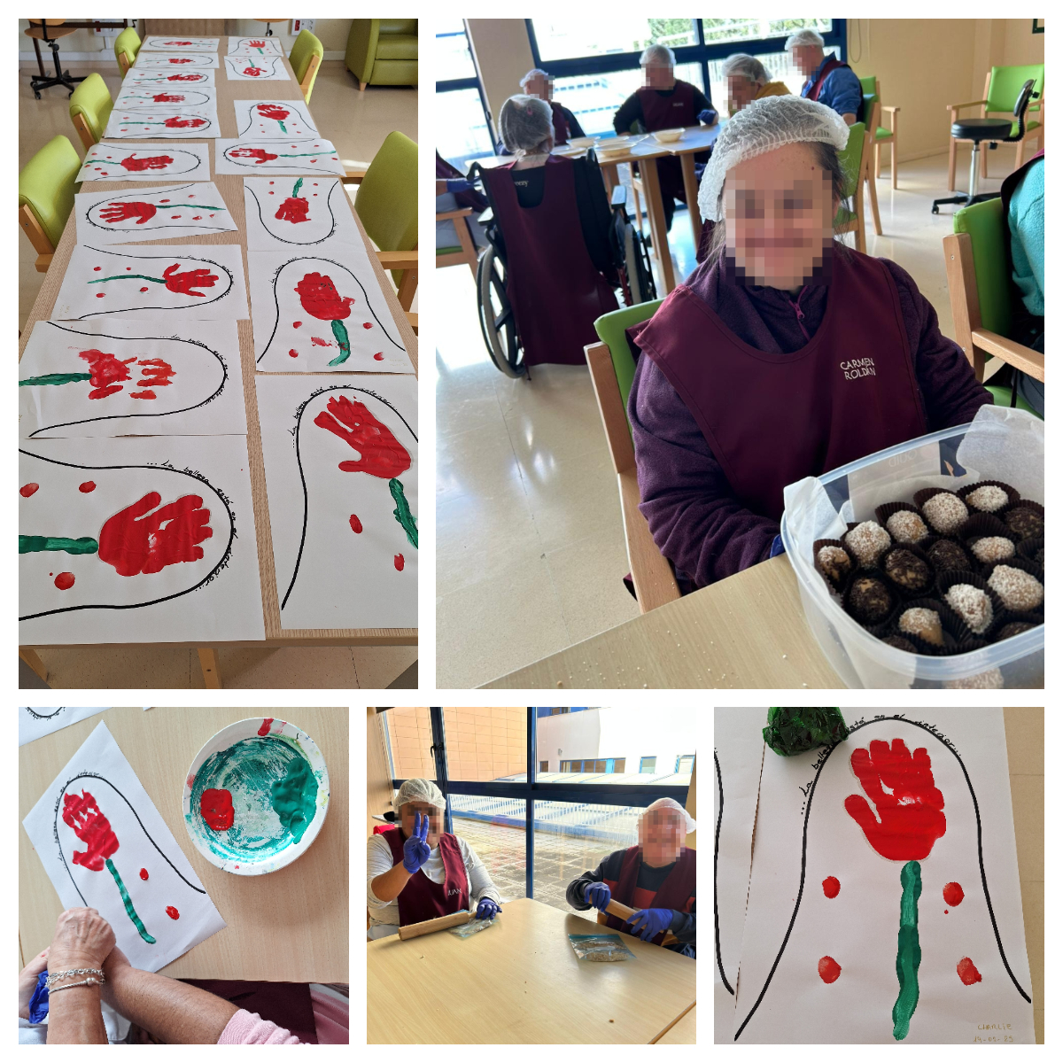 Aquest any, al centre de dia de discapacitat hem celebrat el «El Dia de l’Amor i Amistat» en dos dies: el primer dia, que va ser dimarts 11, aprofitant el taller de cuina vàrem fer uns bombons de xocolata que portaven: galletes triturades, llet condensada i llimadures de xocolata o coco rallat.