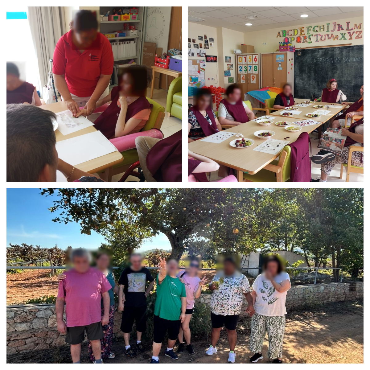 Durant tota la setmana del 15 al 19 de setembre s'ha realitzat diferents activitats relacionats amb el raïm: hem fet un mural amb dibuixos de raïm en les quals les hem pintat amb rotllos de paper de WC i de cuina, vam fer una simulació d'un tronc amb paper per a penjar aquest raïm, el dimecres vam anar als cellers de Can Rich, en la qual vam veure de prop l'elaboració del vi, el dijous vam veure un documental del raïm on explicava la seva recollida i com s'obté del raïm el vi i, per a acabar, el divendres vam fer uns dibuixos amb la pell de raïm que, al ser morada,  ens van sortir diferents tons de lila i alguns d'ells fins i tot van deixar la pell.