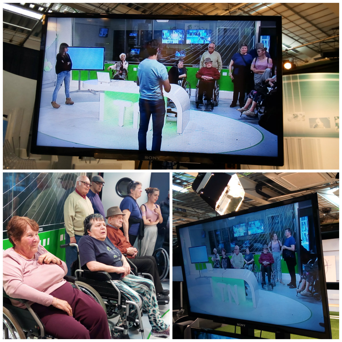 Vàrem ser als estudis d’enregistrament del telenotícies, ens varen explicar com es realitza i produeix el telenotícies, i vàrem fer una posada en escena de com es grava.