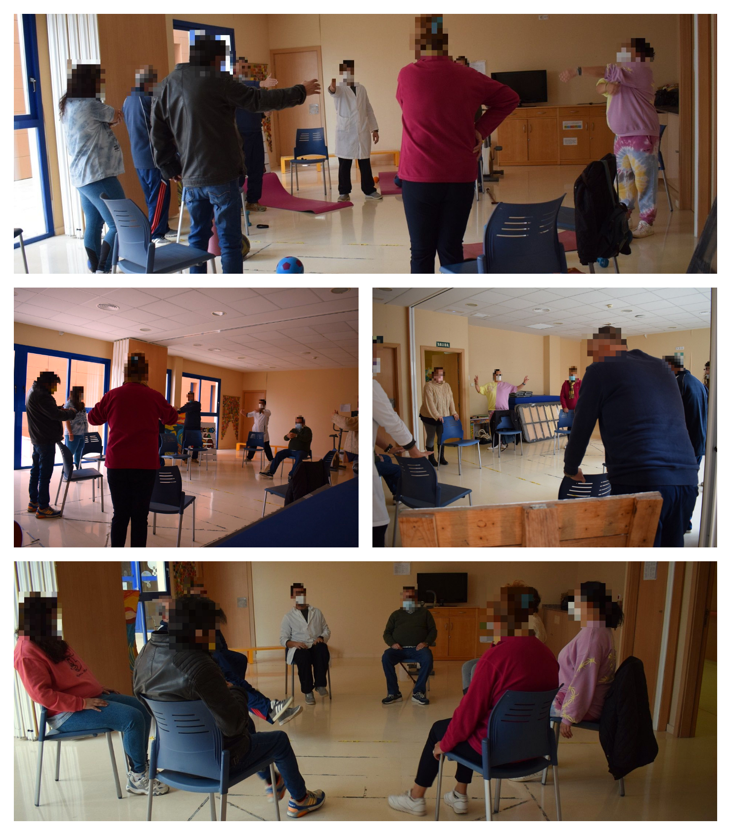 Para que todos puedan participar, se adaptan las actividades a sus necesidades. En este caso, se han utilizado sillas para que las personas que no tienen mucha movilidad o tolerancia al esfuerzo pudieran participar.