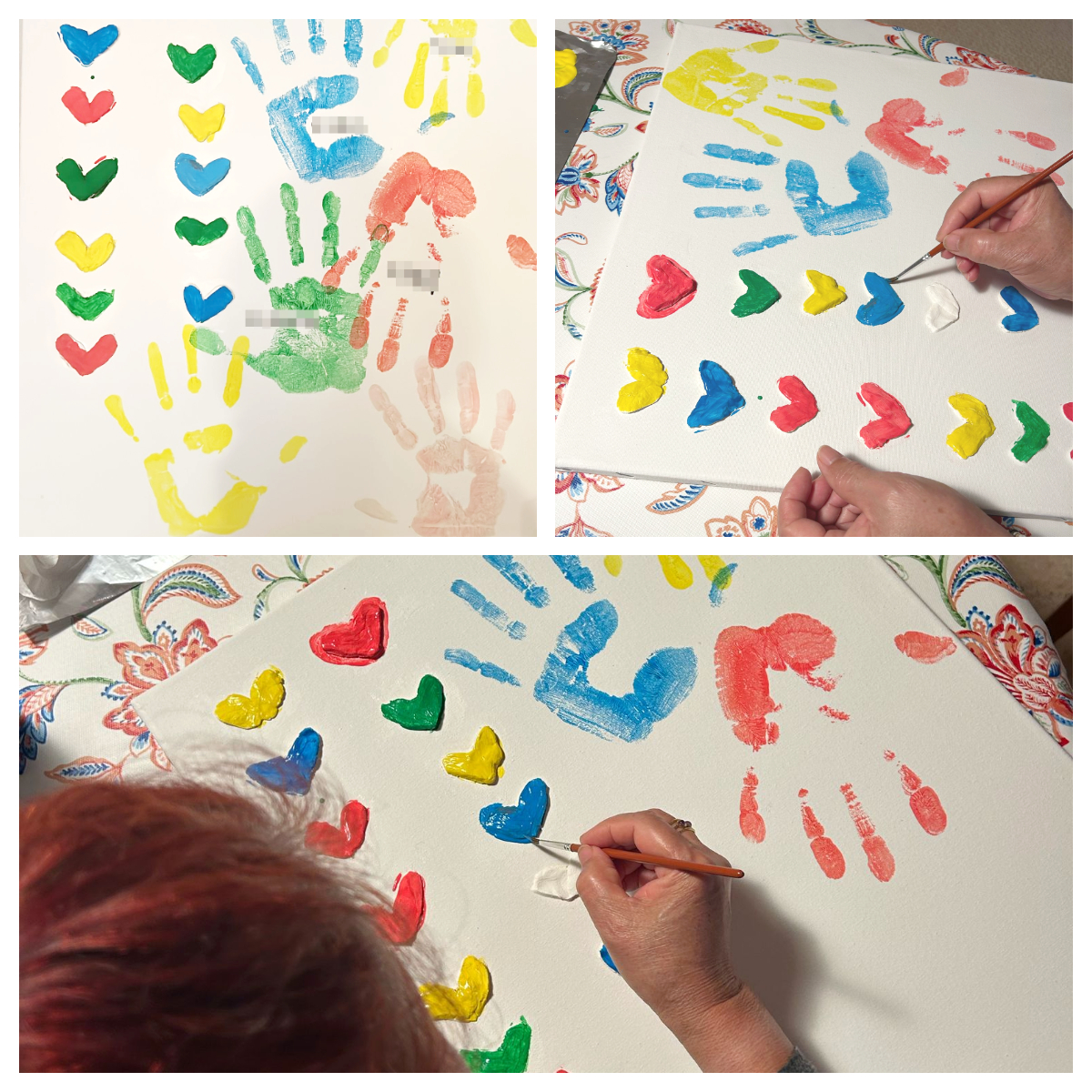 Cada uno de los residentes ha puesto su mano en el lienzo con un color.