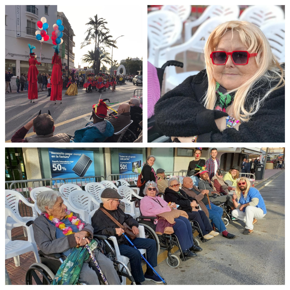 Gracias a la participación de la concejalía de cultura y festejos, que nos proporcionaron el transporte y un espacio en primera línea para nosotros, un grupo de personas residentes y varias personas trabajadores fuimos testigos del ingenio y la creatividad de las asociaciones, escuelas y agrupaciones que participaron en el desfile.