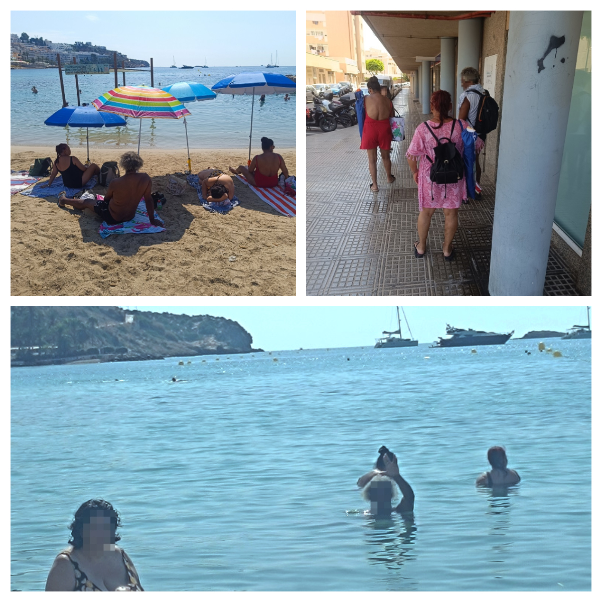 Nos vamos bien equipados con sombrillas, agua y zumo fresquito, ¡nos pasamos casi todo el rato en el agua y vuelta para el piso a comer!