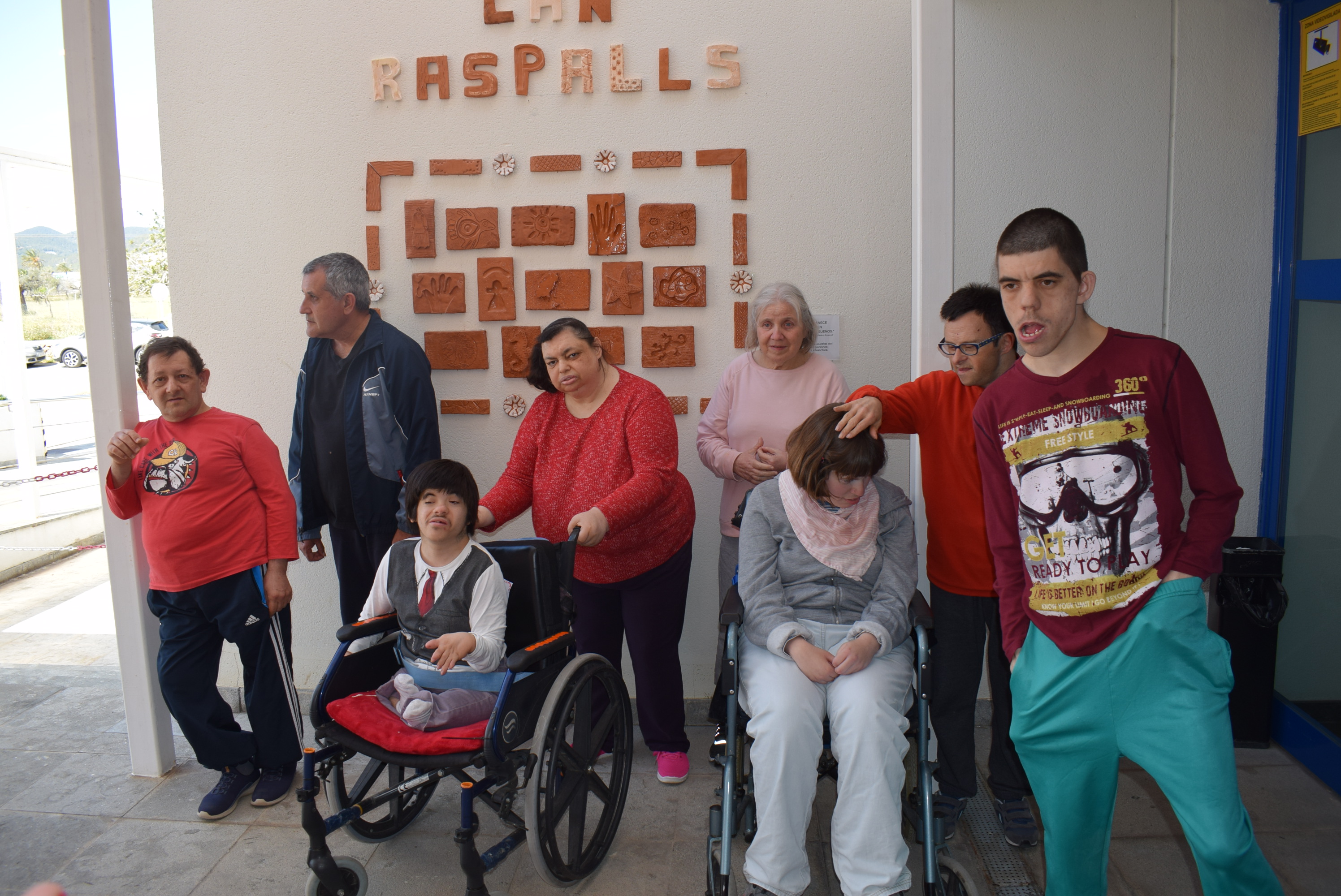 Para hacer resaltar dichas placas, han diseñado también un marco de barro con diferentes texturas. Por último, las letras “Can Raspalls”, elaboradas en barro rojo y blanco, rematan la obra artística y dan la bienvenida a nuestro centro.