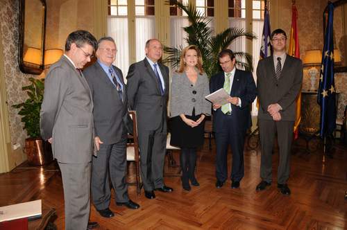 El President del Consell Econòmic i Social lliura a la Presidenta del Parlament un exemplar de l'"Enquesta de Serveis a les Illes Balears", any 2005