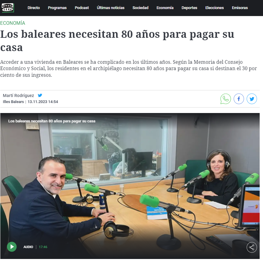 A l'entrevista es responen els dubtes sobre algunes de les dades recollides a la Memòria del CES sobre l'economia, el treball i la societat de les Illes Balears 2022